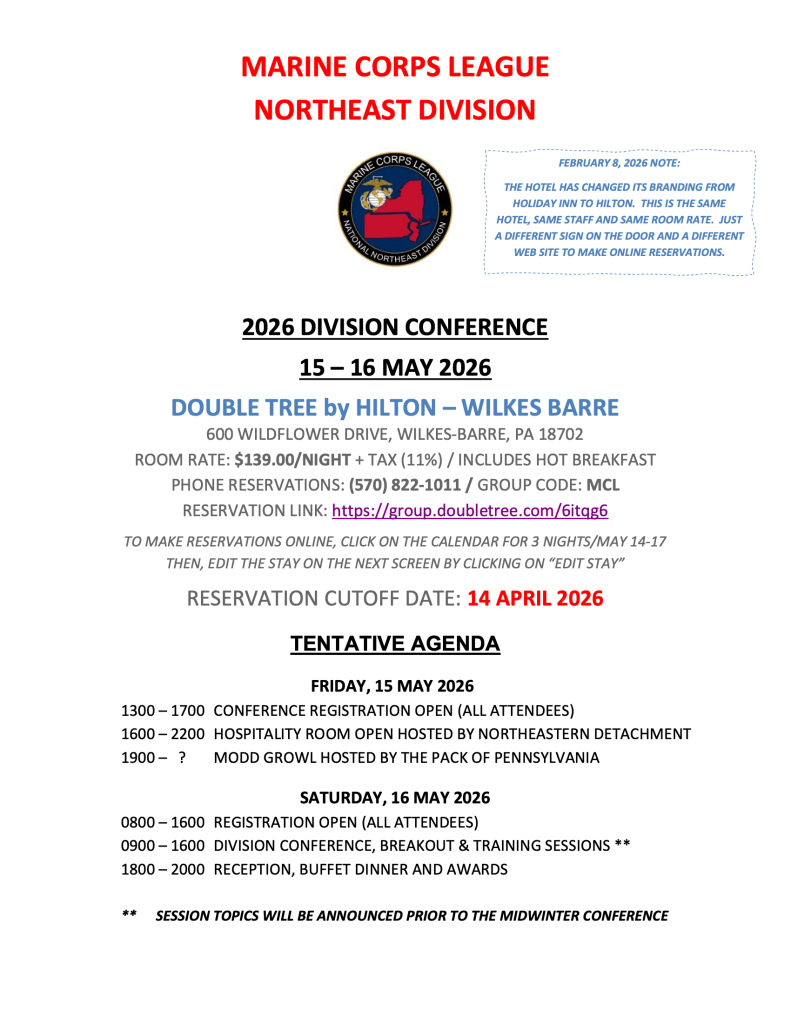 The Hotel has changed its brand from Holiday Inn to Hilton, so the online registration web site has changed accordingly. There is a new link in the attached notice along with a note at the top of the page. The notice should be distributed within your Departments and can be posted on social media as well. The notice is now posted on the division web site and the NED FB page will be updated shortly. I expect that the registration forms and ad book forms will be posted on the web site shortly.